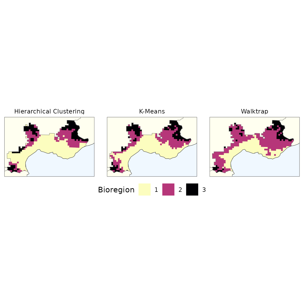 map_bioregions(vege_kmeans_bold, geometry = vegesf, plot = TRUE)