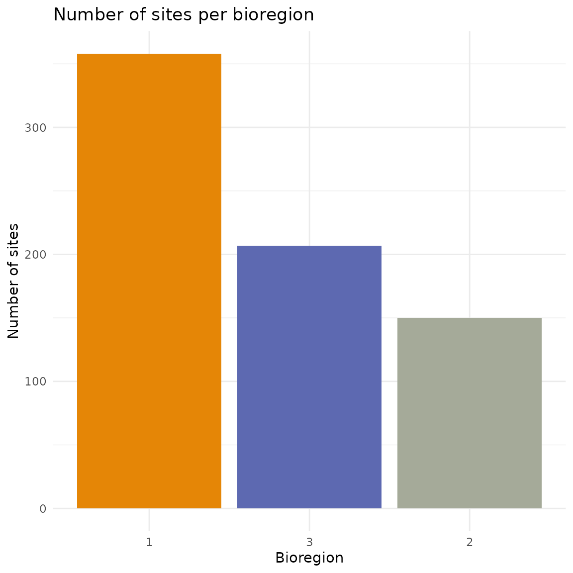 # Count number of sites per bioregion